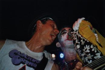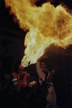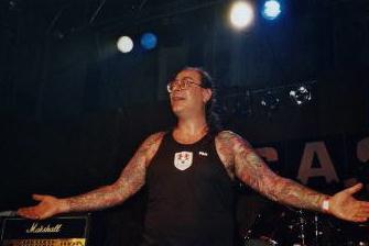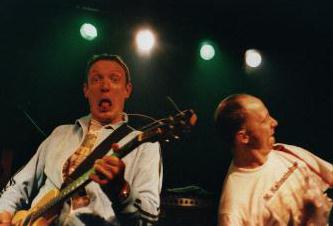| Auch 4 Promille, die ebenfalls mal wieder richtig die Kuh fliegen ließen, mussten aufhören, bevor sie sich richtig warmgespielt hatten. Gab es bei den NRWlern ordentlich Musik zum Mitgröhlen, war der Auftritt von Duane Peters Zombie Truppe und Corey Parks, richtig, das is` die große Basserin mit den riesigen Pistolen, die schon bei Nashville Pussy die Seiten zupft , eher was für die Augen . Na ja, musikalisch gefallen mir die US Bombs eigentlich besser und auch die Hunns ´ne recht heiße Show abzogen, so richtig nach meinem Geschmack war´s nicht, aber sie waren immerhin noch ´ne ganze Ecke besser, als das, was da noch kommen sollte, die Kassierer. |