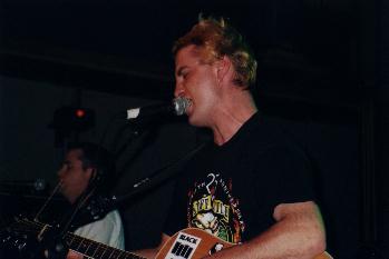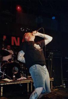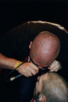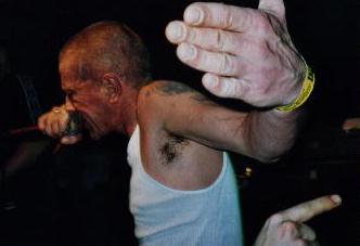 | Zu meiner Schande muß ich gestehen, daß mir Tech 9, bis zu ihrem Auftritt an diesem Abend absolut nichts sagten und wenn man mal ehrlich ist, Tech 9 klingt ja auch nicht gerade kultverdächtig, oder ? Offensichtlich ging es aber noch einigen anderen Leuten wie mir, da sich zunächst relativ wenige Leute vor der Bühne einfanden. Das änderte sich jedoch recht schnell, als die Kollegen loslegten und der Zuhörerschaft ´ne absolut geile Hardcore-Oi! Mischung um die Ohren hauten, die so richtig schön abging. |