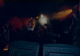 Einem der Anwesenden schien der Auftritt der Jungs offensichtlich weniger gefallen zu haben. Jedenfalls stürmte irgend ein Depp in einer kurzen Pause plötzlich die Bühne und den ahnungslosen und völlig verdutzten Blüm zu Boden, aus welchen Gründen auch immer. Klar, daß so etwas nicht ungestraft über die Bühne gehen konnte. Die übrigen Anwesenden fackelten nicht lange, griffen sich den Störenfried, geleiteten ihn mehr oder weniger freundlich ins Freie und der Spaß konnte weitergehen.> | ![]() Chet, The Templars |