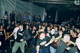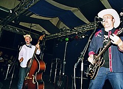 | Auf jeden Fall war die Wahl von Kometi als Vorband jedoch alles andere, als ein Griff ins Klo, da sie Musik der Jungs, die sich irgendwo zwischen schön gediegen gespieltem, langsameren und mittelschnellen Rockabilly bewegte, nicht nur bei den wenigen anwesenden Psychos so viel Anklang fand, daß man bei dem einen oder anderen Lied auch schon mal die Gelegenheit nutzte, um im Wrecking-Pit das übrige Publikum ein wenig aufzumischen und so doch wenigstens etwas gute Stimmung in die Bude zu bringen, sondern auch bei den übrigen Anwesenden berechtigter Weise breite Zustimmung fand. |