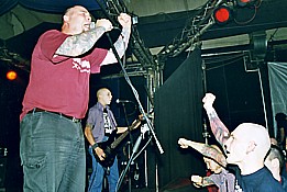 Eigentlich hatte ich mir vorgenommen, daß dieses Konzert von The Business vorerst das letzte für mich sein sollte. Ich hatte die Engländer betreits so oft gesehen, daß mich eine Ankündigung ihrer Konzerte nun wirklich nicht mehr gerade vom Hocker reißen konnte. O.k., die "Under The Influence" war den Jungs ziemlich gut gelungen, aber live hatte ich neben einigen übelst genialen Auftritten, wie dem in Morecambe vor einigen Jahren, auch schon relativ derbe Abstürze bei den Engländern erlebt. So waren denn auch eher die Auftritte von Deadline und Toxpack der Antrieb, um mir wieder mal eine Nacht im Eiskeller um die Ohren zu schlagen. Letztere schon deshalb, weil mich das Konzert von Toxpack in Berlin letztes Jahr beim Punk And Disorderly Festival einfach davon überzeugt hatte, daß die Jungs auch live richtig gute Musik abliefern und erstere, weil man beiīnem Konzertbesuch eines Deadline Gigs eigentlich nix verkehrt machen kann. So pilgerten denn an diesem Abend auch wieder mal erfreulich viele Leute in den Eiskeller, unter denen sich, anders als bei den letzten Konzerten, auch `ne Menge bekannter Gesichter befanden, so daß man die Wartezeit bis zum Auftritt von Tockpack prima mit dem einen oder anderen Schwätzchen totschlagen konnte. |