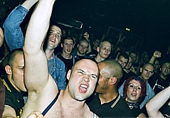 Ja, es gab zwischenzeitlich auch einige Unstimmigkeiten wegen einer Hand voll Faschos, die sich offensichtlich zur Abwechslung auch mal ein wenig vernünftige Mucke gönnen wollten, sich im Großen und Ganzen aber recht friedlich verhielten. Das Ganze spielte sich allerdings eher hinter den Kulissen des Eiskellers ab. Das und die Tatsache, daß dieses "Ereignis" hinterher offensichtlich endlose weitere Diskussionen auslöste, die später teils sogar auf der "Skinheads Leipzig" Seite ausgetragen wurden, seien hier aber nur am Rande erwähnt. Ich für meinen Teil halte mich daraus und denke mir meinen Teil dazu. |
